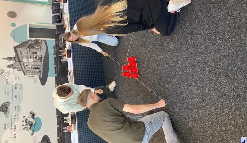 Am zweiten Kennenlerntag am Montag, den 4. September, startete Alicia Koblitz den Tag mit den letzten Infos zur Ausbildung. Im Anschluss folgte ein lustiges Spiel zum Teambuilding, dessen Aufgabe es war, Becher nach festgelegter Vorgabe aufzustellen. Das Besondere hierbei war, dass wir die Becher mit einem Gummiband, welches mit vier Schnüren befestigt war, heben und platzieren mussten und hierbei sowohl Geschick, als auch Kommunikation gefragt war. Nach intensiven und lustigen Runden die Bechertürme aufzustellen, haben wir uns auf den Weg gemacht, um Hockenheim kennenzulernen. Unsere erste Station war die Feuerwehr Hockenheim. Wir wurden rund ums Feuerwehrhaus geführt mit all seinen verschiedenen Bereichen und Fahrzeugen, mit einem abschließenden Ausblick auf die Region auf der 30 Meter hohen Drehleiter.