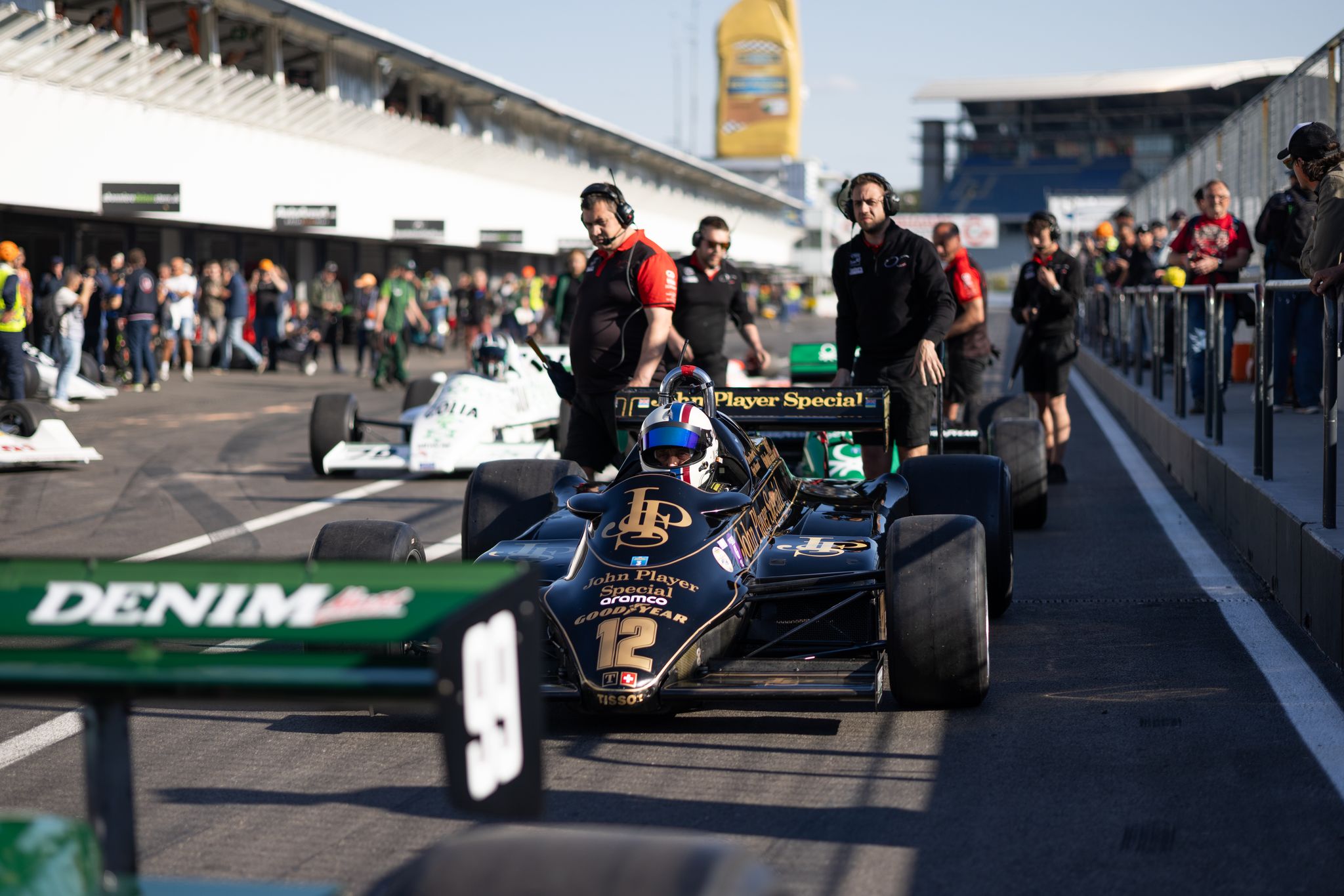 Drei Safety-Car-Phasen im Sonntagslauf bewiesen, dass die Masters-Piloten alles andere als einen Concours d’Elegance im Sinn haben. Tags zuvor war es Matthew Wrigley, der in seinem Tyrrell 011 Markenkollege Jamie Constable und den Iren Mike Cantillon im Williams FW08 hinter sich halten konnte. Im zweiten Durchgang, der nach einem Motorschaden am LEC CRP1 von Peter Williams vorzeitig beendet werden musste, lag Warren Briggs im McLaren M29 am Ende vor Wrigley und Werner D’Ansembourg im Brabham BT49. Angetrieben wurde alle Rennwagen von einem V8-Cosworth-DFV-Motor, dem erfolgreichsten Triebwerk der Grand-Prix-Geschichte.