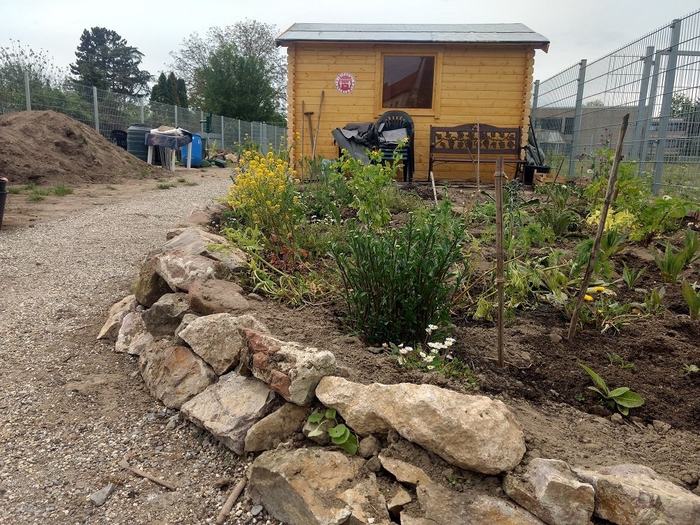 Nahe des renaturierten Kraichbachs entsteht unser neuer "Begegnungsgarten" - ein Gemeinschafts-Garten, der unter Naturschutz- und Artenschutzaspekten bewirtschaftet wird. Das Team hat mittlerweile viele verschiedene Strukturen angelegt (Kräuterspirale, Wildstaudenbeet, Eidechsenunterschlupf, Hochbeet) und freut sich, dass die neue Gartensaison beginnt!