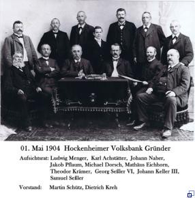 Das zweite einheimische Kreditinstitut wurde am 1. Mai 1904 als „ Volksbank Hockenheim eGmuH“. (anfangs also unbeschränkte Haftung der Mitglieder; beschränkte Haftung erst ab 1941) gegründet. Angesichts der guten wirtschaftlichen Lage entwickelte sich die Bank rasch und hatte nach wenigen Jahren mit Raumnot zu kämpfen, wobei man bedenken muss, dass damals noch an Stehtischen gearbeitet wurde und nicht an bequemen Schreitischen, die viel mehr Platz brauchten. Für ein eigenes Bankgebäude reichten die vorhandenen Mittel nicht aus und so zerbrachen Vorstand und Aufsichtsrat der Bank den Kopf, wie man an geeignete Mieträume kommen könnte, die auch genügend Platzreserve für die absehbare Zukunft bieten sollten.