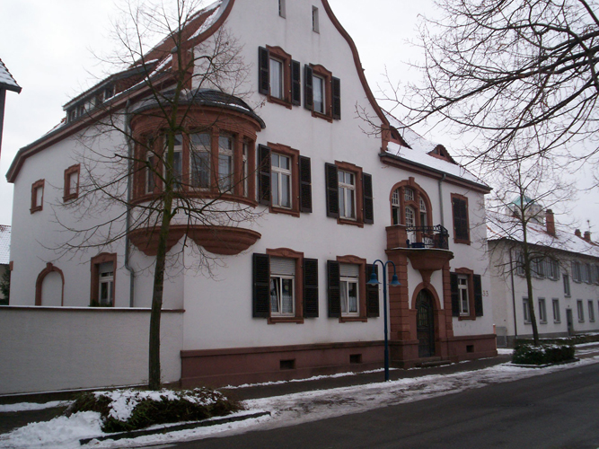 Der im Auftrag der Sparkasse erstellte, recht bescheidene Neubau stellte wohl eine Kopie des Standardgebäudes dar, welches seinerzeit an vielen Stellen unserer Stadt entstand und heute noch z.B. entlang der Heidelberger Straße zu sehen ist . Dass das damals noch sehr kleine Kreditinstitut als Bauherr auftrat, ist trotzdem auf den ersten Blick völlig unverständlich, denn es benötigte noch kein Gebäude für eigene Zwecke Hinter diesem Bauwerk steckte vielmehr der politische Wille der Gemeinde als Alleineigentümer und Gewährsträger der Sparkasse, zumal seinerzeit der Bürgermeister kraft Amtes dort auch das mit Abstand einflussreichste Vorstandsmitglied war. Folgerichtig mietete die Gemeinde das Anwesen an und verlegte in die neuen Räume das seinerzeit noch im alten, abbruchreifen Rathaus residierende örtliche Notariat. Dies wiederum ermöglichte den Beginn der Arbeiten für den dringlichen Rathausneubau, welcher im Jahr 1892 eingeweiht wurde.