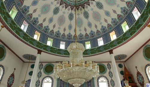 Die Geschichte des Gebets- und Gemeindehauses reicht zurück bis in die siebziger Jahre. 6 Jahre Bauzeit und 2,5 Mio. DM waren nötig, bis die Haci Bayram Moschee am 2. Juli 2000 im Talhaus von Hockenheim eingeweiht werden konnte. Nach außen hin dürfte der wohl augenfälligste Teil die Kuppel mit einem Durchmesser von 9,5 m sein.