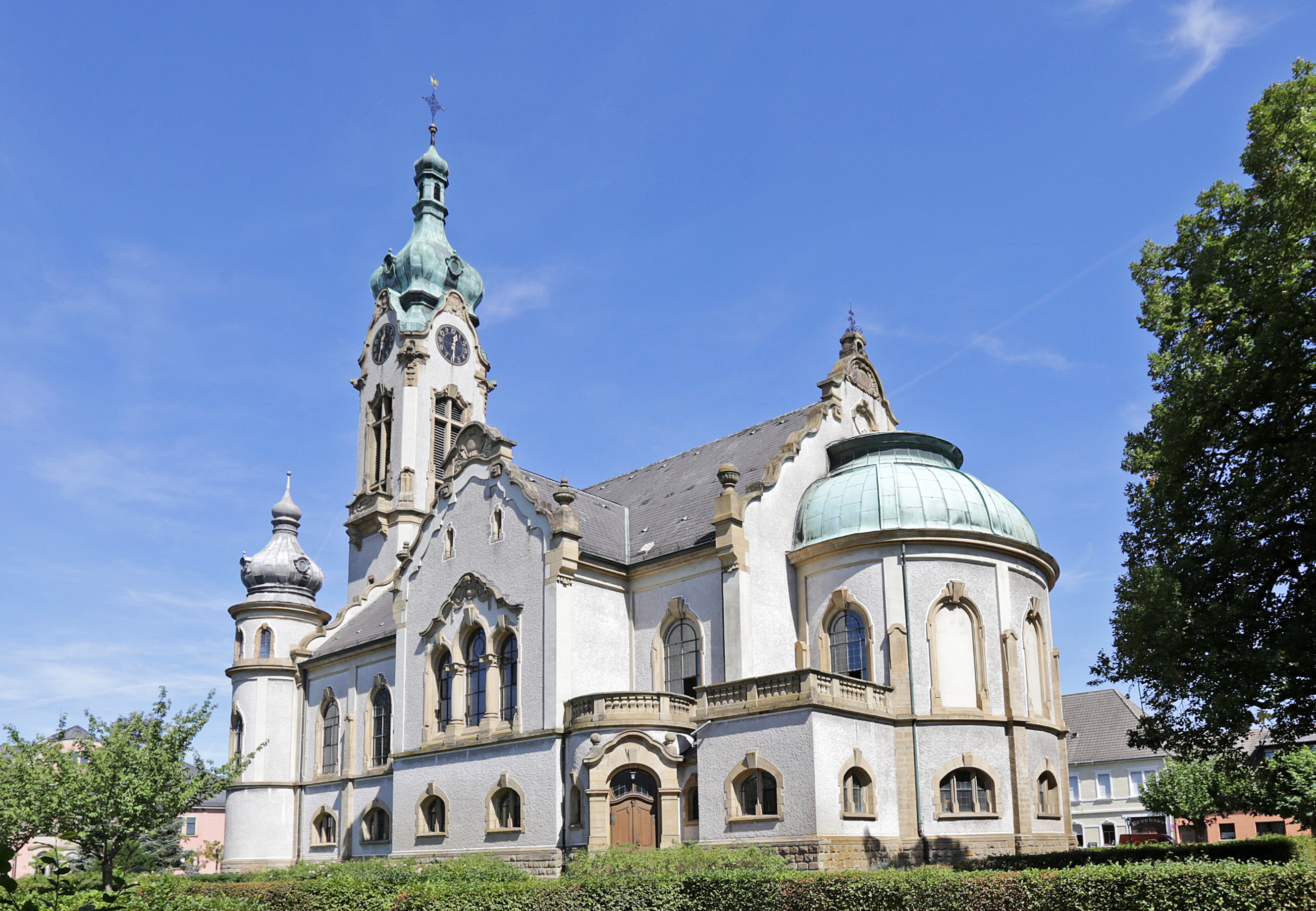Der Grundstein für die im frühen Jugendstil erstellte evangelische Stadtkirche wurde 1906 gelegt. Ein paar Jahre später konnte die Kirche eingeweiht werden. Direkt am Marktplatz gelegen, umrahmt von einer parkartigen Umgebung, hat die Kirche mehr monumentale Ausstrahlungskraft denn je.