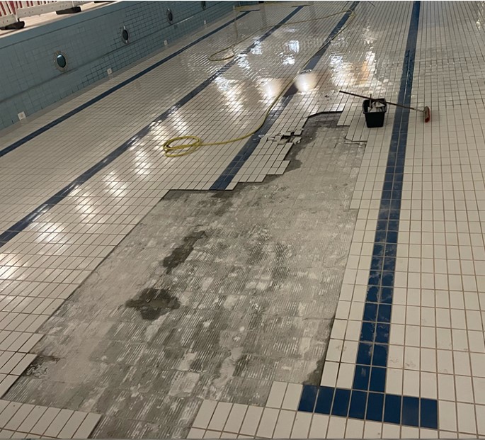 Bei den Kontrollarbeiten musste dazu auch das Wasser abgelassen, kontrolliert und gereinigt werden. Im Prozess der Beckenleerung wird darauf geachtet, dass die Fliesen nicht abtrocknen können, so dass eine unnötige Spannung entsteht. Dies hätte zur Folge, dass die Fliesen sich lösen und brechen können. Genau dies ist jetzt, trotz des überwachten Feuchtigkeitszustand, passiert. Hintergrund dürfte das Alter der Fliesen sein, welche sich über Jahrzehnte gehalten haben. Eine schnell eingeleitete Notreparatur konnte jedoch nicht verhindern, dass das Becken einen immensen Schaden erlitten hat. Zur Folge hat dies nun, dass das Becken saniert werden muss. Hierzu sind nun weitere Untersuchungen nötig, um dann eine entsprechende Planung vorzunehmen.