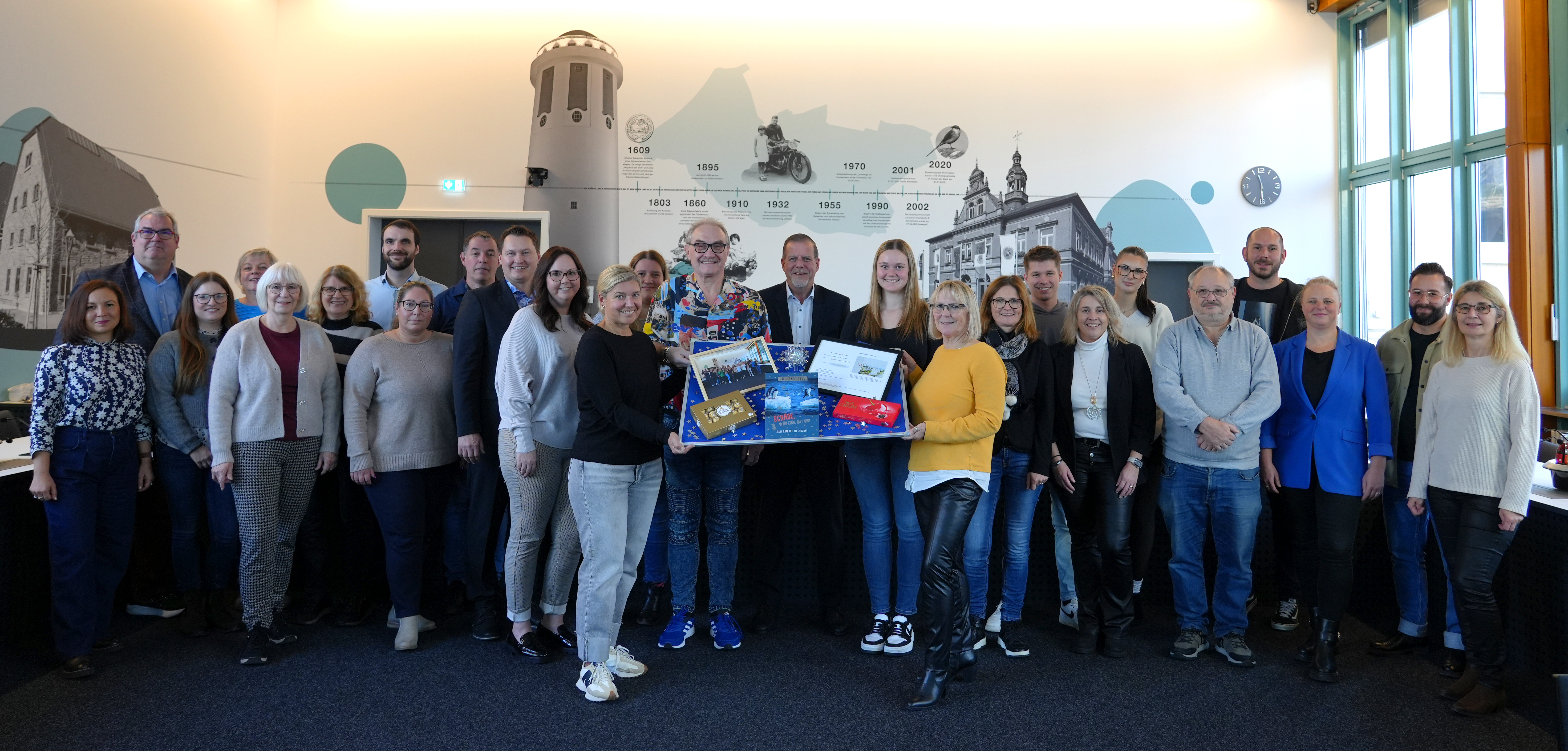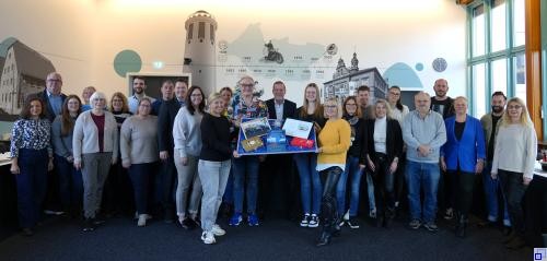 Die Kolleginnen und Kollegen des Fachbereichs Finanzen ließen es sich nicht nehmen, ihren Fachbereichsleiter gebührend zu verabschieden. Neben Worten des Danks und der Wertschätzung überraschten sie Fitterling mit einer kleinen Diashow, die ihn bei verschiedenen Stationen seiner beruflichen Laufbahn zeigte und überreichten ihm feierlich ein Abschiedsgeschenk. Auch der Personalrat, vertreten durch den Personalratsvorsitzenden Michael Notheisen, fand Worte des Lobes und des Dankes.